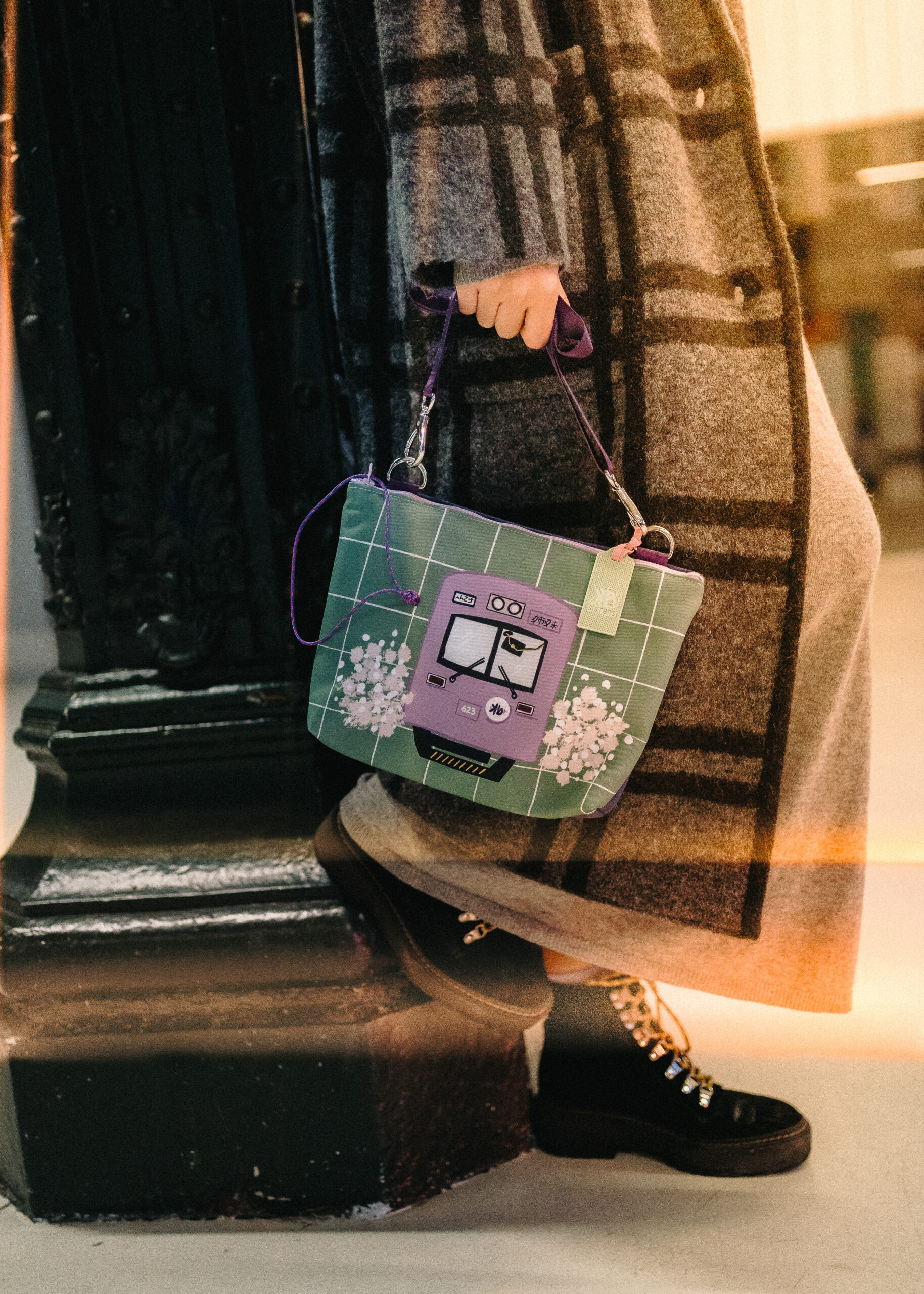 Os presentamos nuestro Pouch, o también llamado «Bolso de mano», elaborado 100% de manera artesanal por nosotras, en esta ocasión con una exclusiva tela diseñada para nosotras por Arodi Bered, diseñadora gráfica mexicana afincada en Bilbao, quien inspirándose en nuestro universo ha creado tres maravillosas ilustraciones, una de ellas es la que ves en esta pieza
