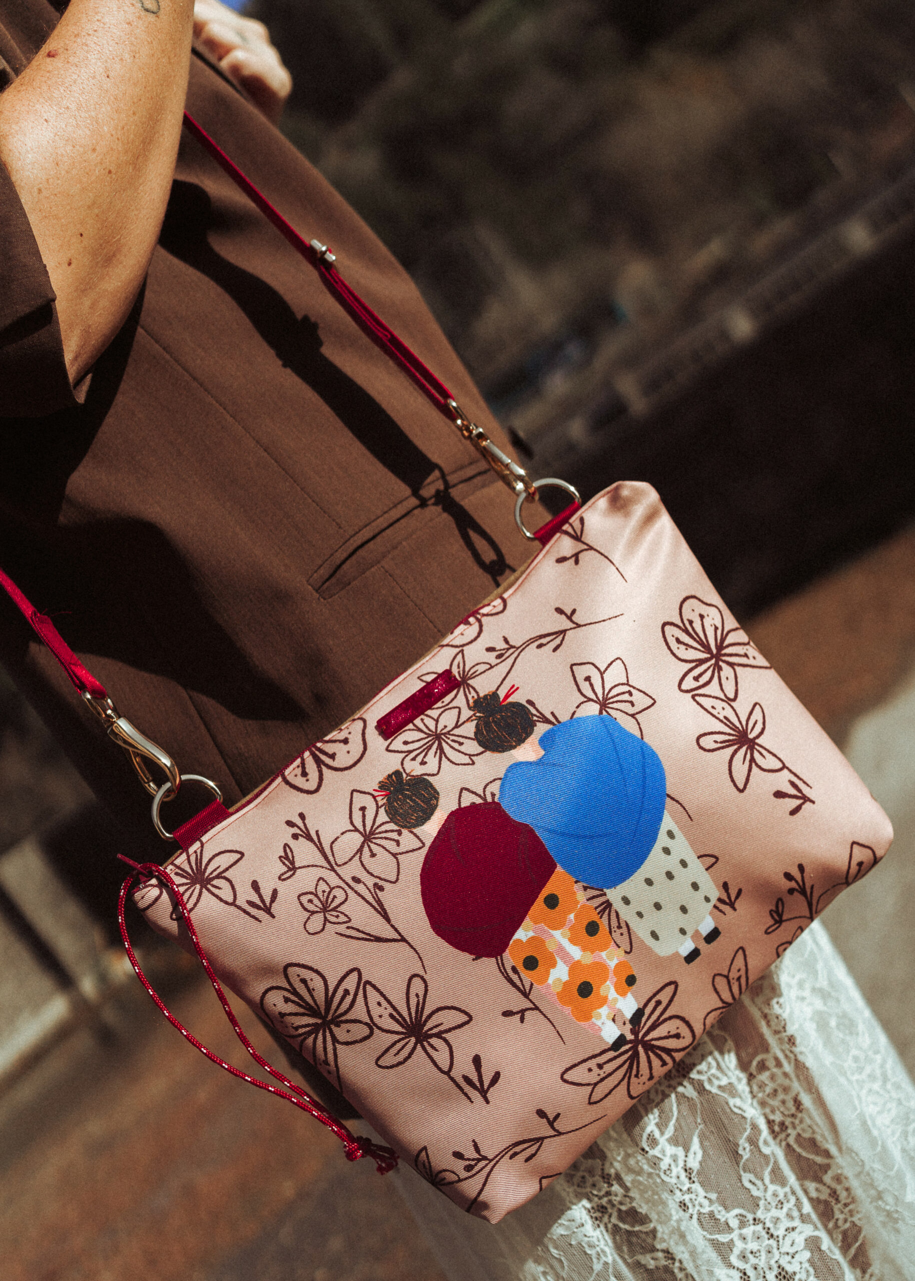 Os presentamos nuestro Pouch, o también llamado «Bolso de mano», elaborado 100% de manera artesanal por nosotras, en esta ocasión con una exclusiva tela diseñada para nosotras por Arodi Bered, diseñadora gráfica mexicana afincada en Bilbao, quien inspirándose en nuestro universo ha creado tres maravillosas ilustraciones, una de ellas es la que ves en esta pieza